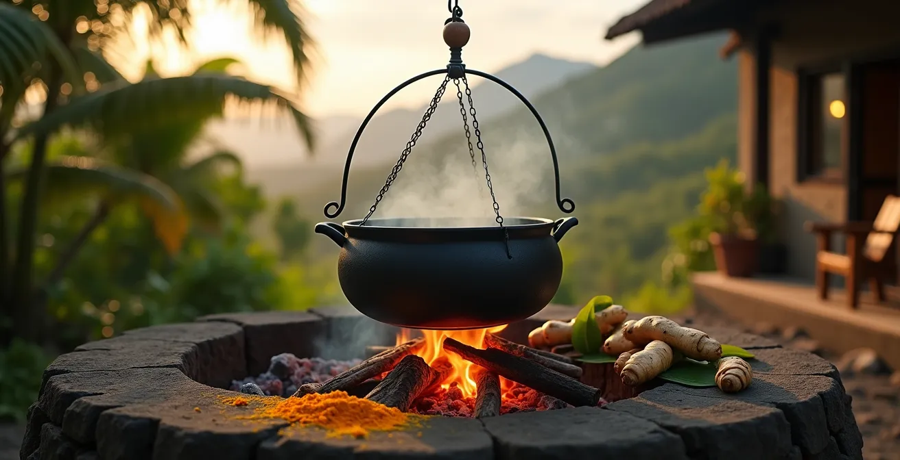 L’odeur qui s’échappe d’une marmite en fonte posée sur un foyer de briques, le crépitement du bois de filaos ou de goyavier, cette fumée légère qui vient caresser les narines… Pour quiconque a mis les pieds à La Réunion, l’évocation du cari au feu de bois est une expérience sensorielle complète. C’est l’image du repas dominical, du partage, d’un art de vivre qui semble immuable. Beaucoup vous diront que le gaz, c’est pratique, mais que ça n’a « pas la même saveur ». Cette affirmation, souvent perçue comme un brin de nostalgie folklorique, cache en réalité une vérité culinaire bien plus profonde et technique.