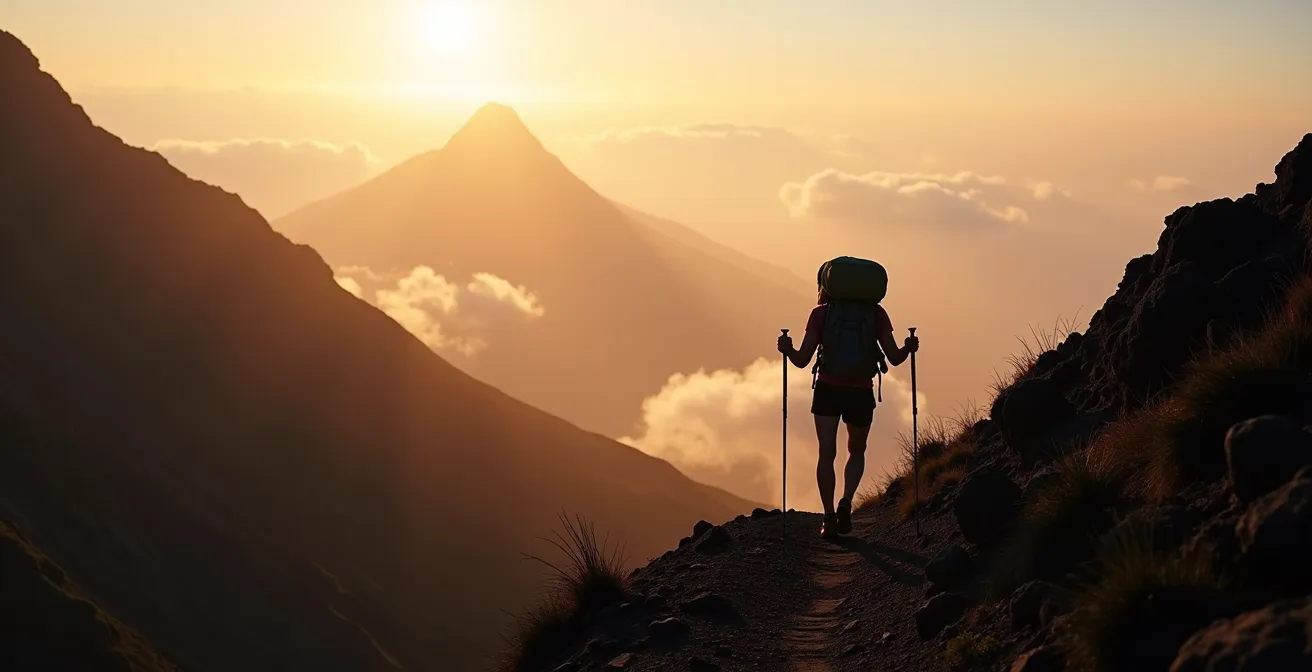Ce départ nocturne a d’autres avantages. Il permet de marcher à la fraîche, un atout non négligeable sous les tropiques, et de minimiser l’exposition au soleil cuisant en altitude. La progression de nuit, focalisée sur le halo de la lampe frontale, favorise également un rythme plus régulier et méditatif. C’est une expérience en soi. Mais ne vous y trompez pas, l’objectif premier est bien de gagner une course contre la montre face aux éléments pour s’offrir une vue dégagée, la récompense ultime de l’effort.