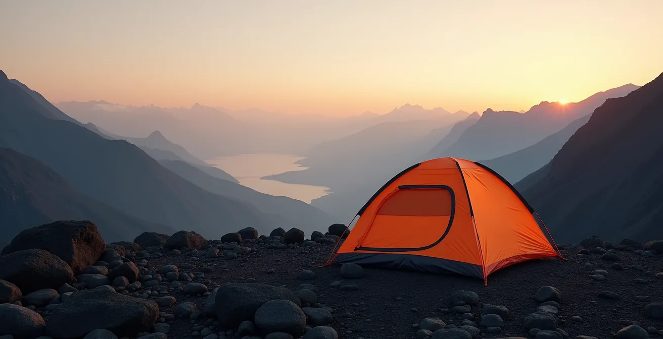 Le choix de votre abri est décisif pour un bivouac réussi dans les Hauts de La Réunion. Le terrain, souvent volcanique, rocheux et inégal, impose des contraintes spécifiques. L’option la plus polyvalente et sécurisante est sans conteste la tente autoportante. Sa structure lui permet de tenir debout sans être forcément plantée au sol avec des sardines, un avantage majeur sur les sols durs du Piton de la Fournaise ou les plateformes rocheuses près du sommet du Piton des Neiges. Elle offre également une meilleure protection contre le vent, souvent violent en altitude, et l’humidité omniprésente.